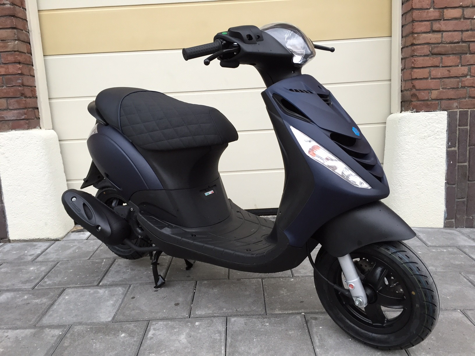 Piaggio zip kappenset mat blauw. Piaggio zip 2000 sp 12km mat zwart led. Piaggio zip plaklogo voorscherm blauw 145. Het is een snorscooter.
