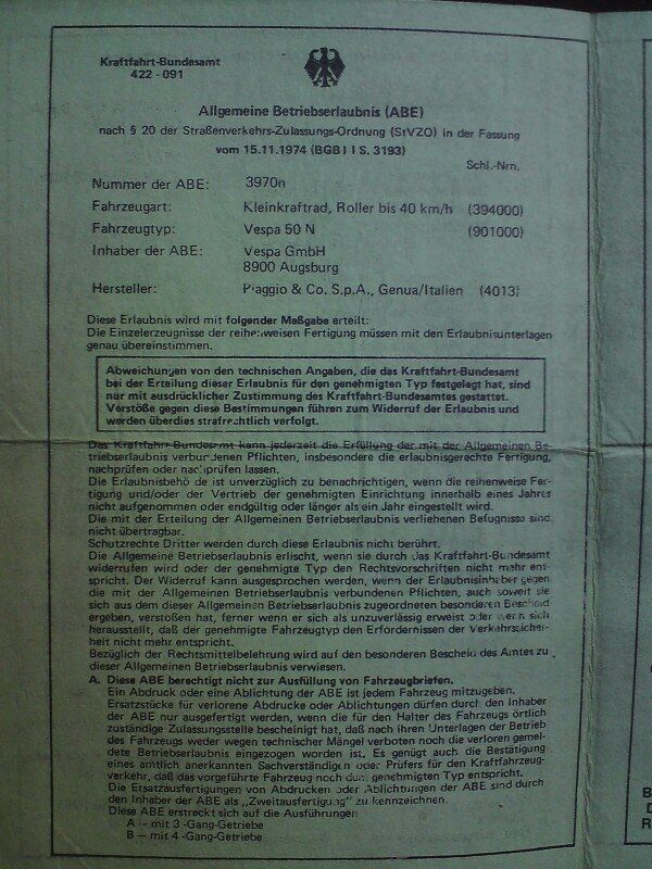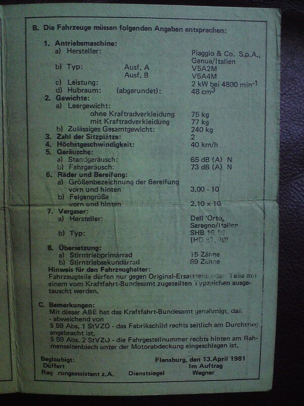 Mal Wieder Piaggio Px Motor Unbedenklichkeitsbescheinigung Vespa Px T5 Cosa Etc Gsf Das Vespa Lambretta Forum